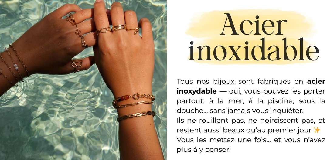 Ils sont en acier inoxydable de haute qualité, pour que tu puisses les porter encore et encore, bien après l’été… et qu’ils fassent briller toutes tes looks ✨
