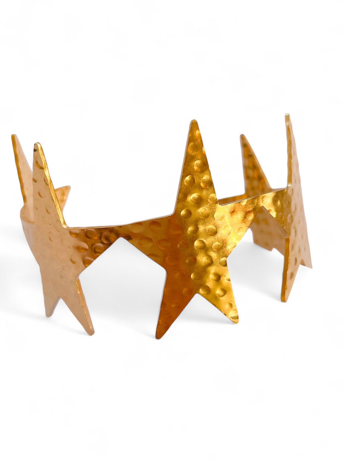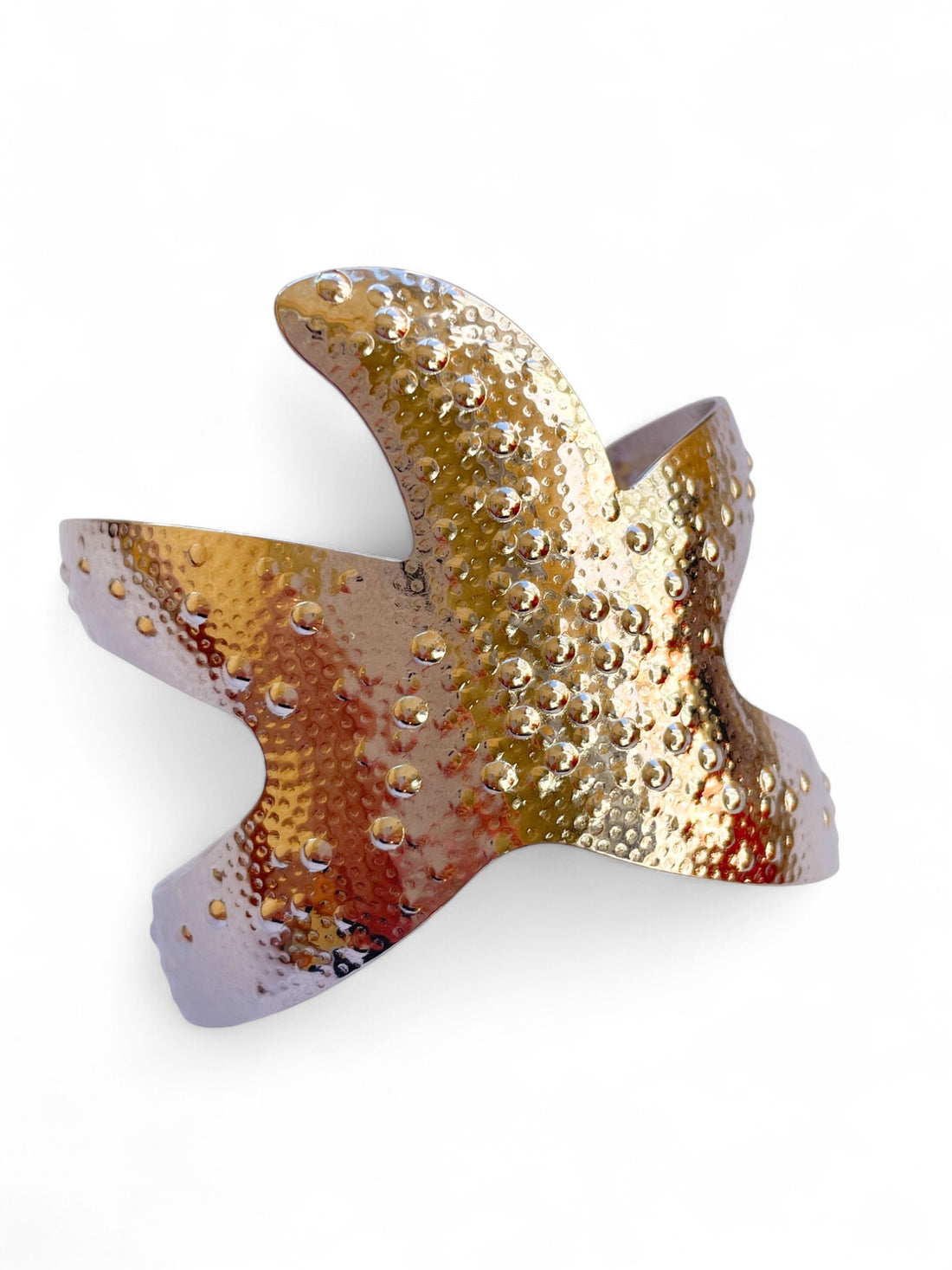 Bracelet doré en forme d’étoile de mer, avec une texture martelée délicate qui capte la...
