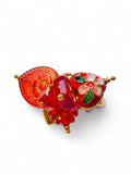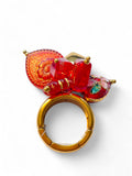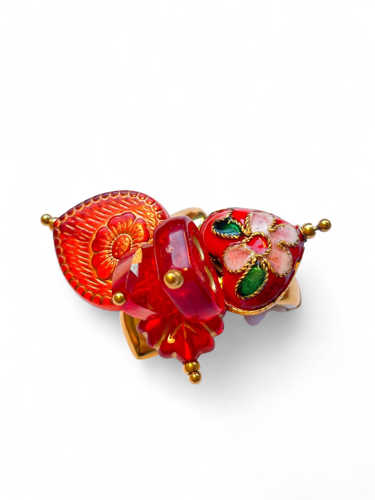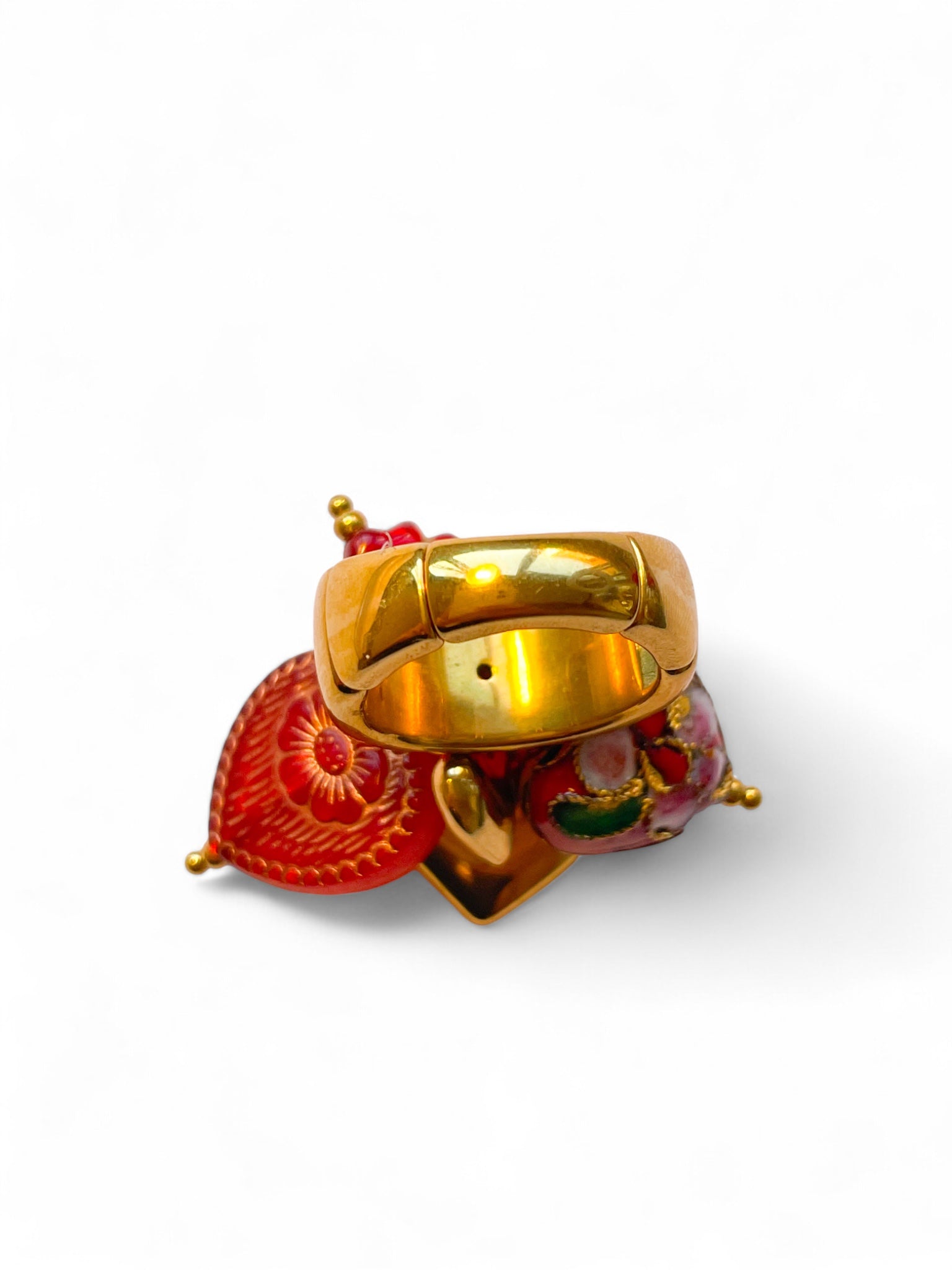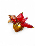 - Bague élastique ornée de breloques rouges et dorées en forme de cœur, pour une touche romantique et originale.