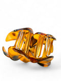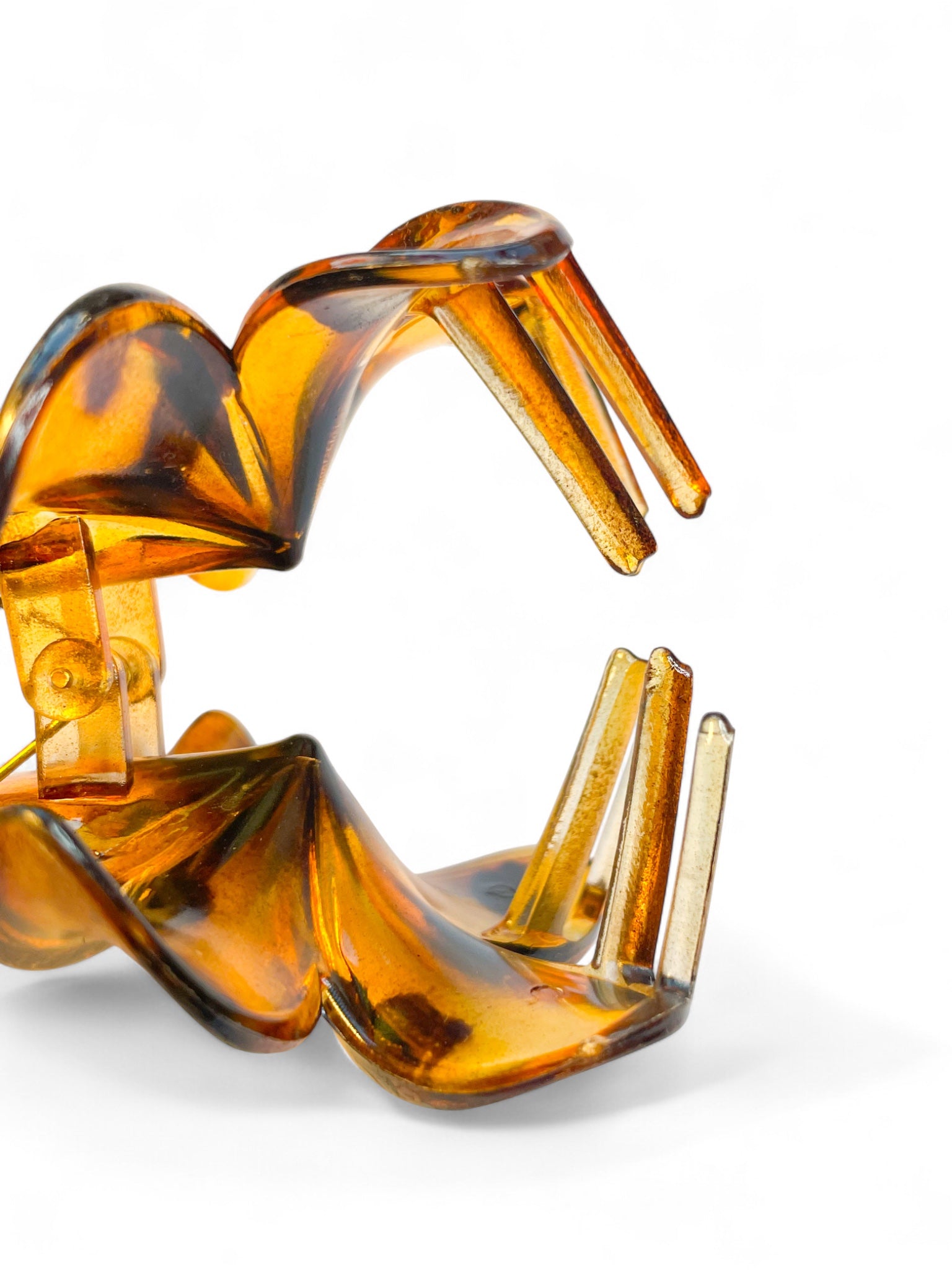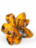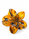 - Barrette fleur en résine ambrée effet léopard, au style automnal et chic.