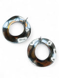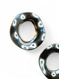Boucles d’oreilles rondes au design minimaliste et moderne, en métal noir brillant effet miroir.