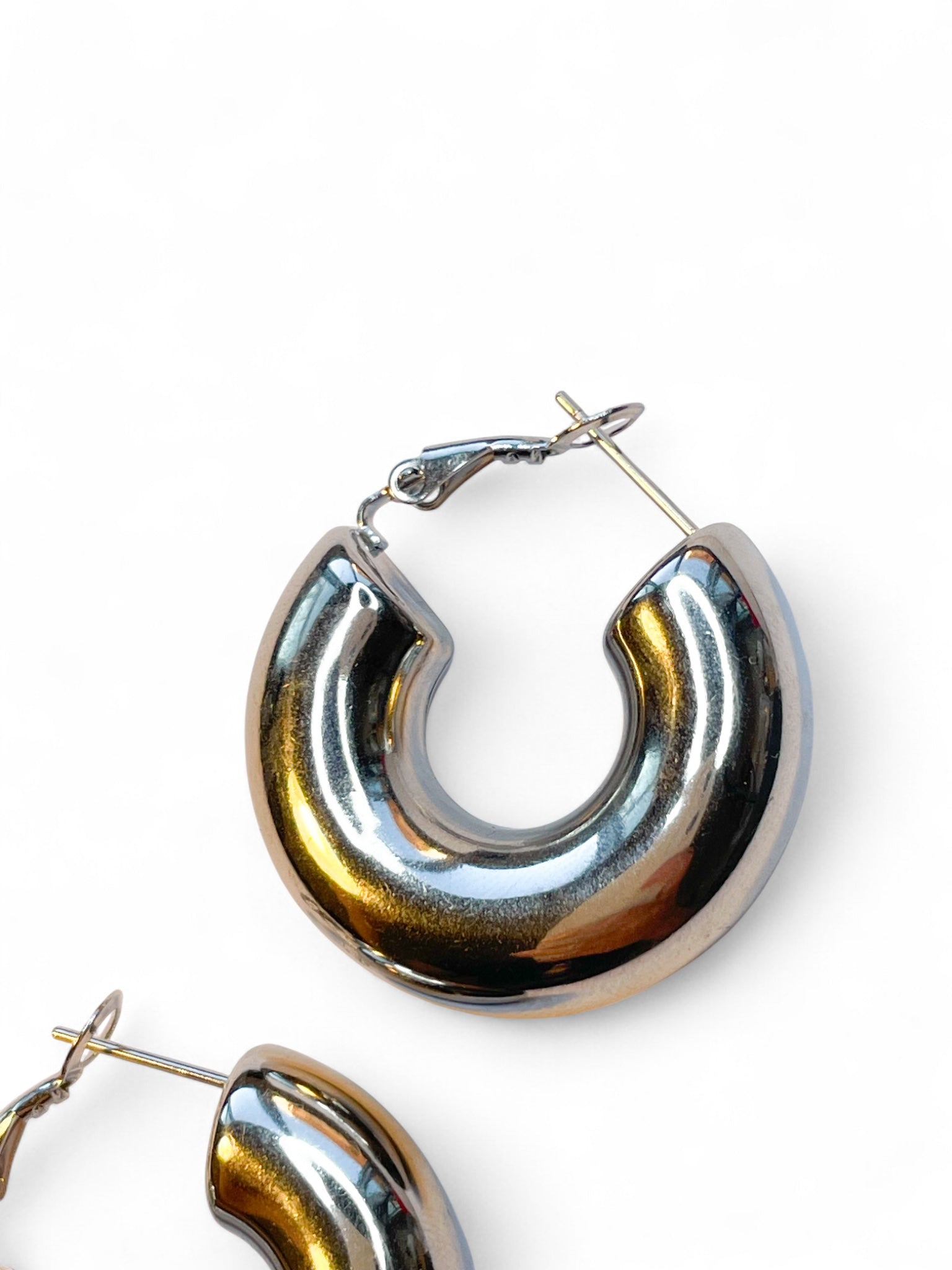 Créoles épaisses au design arrondi et moderne, parfaites pour un look chic et intemporel.