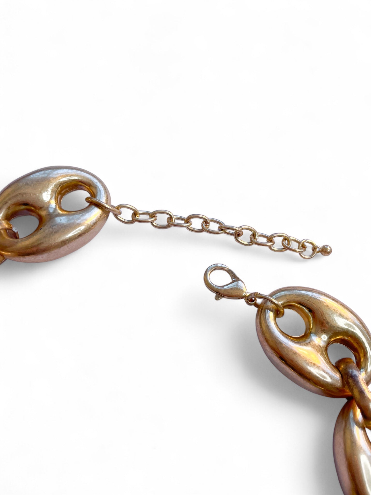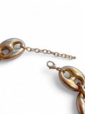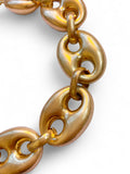Boucles d’oreilles au design sculptural et moderne, composées de maillons ovales en métal doré brossé pour un charme chic et intemporel.