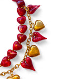 - Collier romantique et audacieux composé de cœurs vert profond effet marbré et de charms dorés brillants, montés sur une double chaîne élégante (disponible aussi en vert)