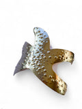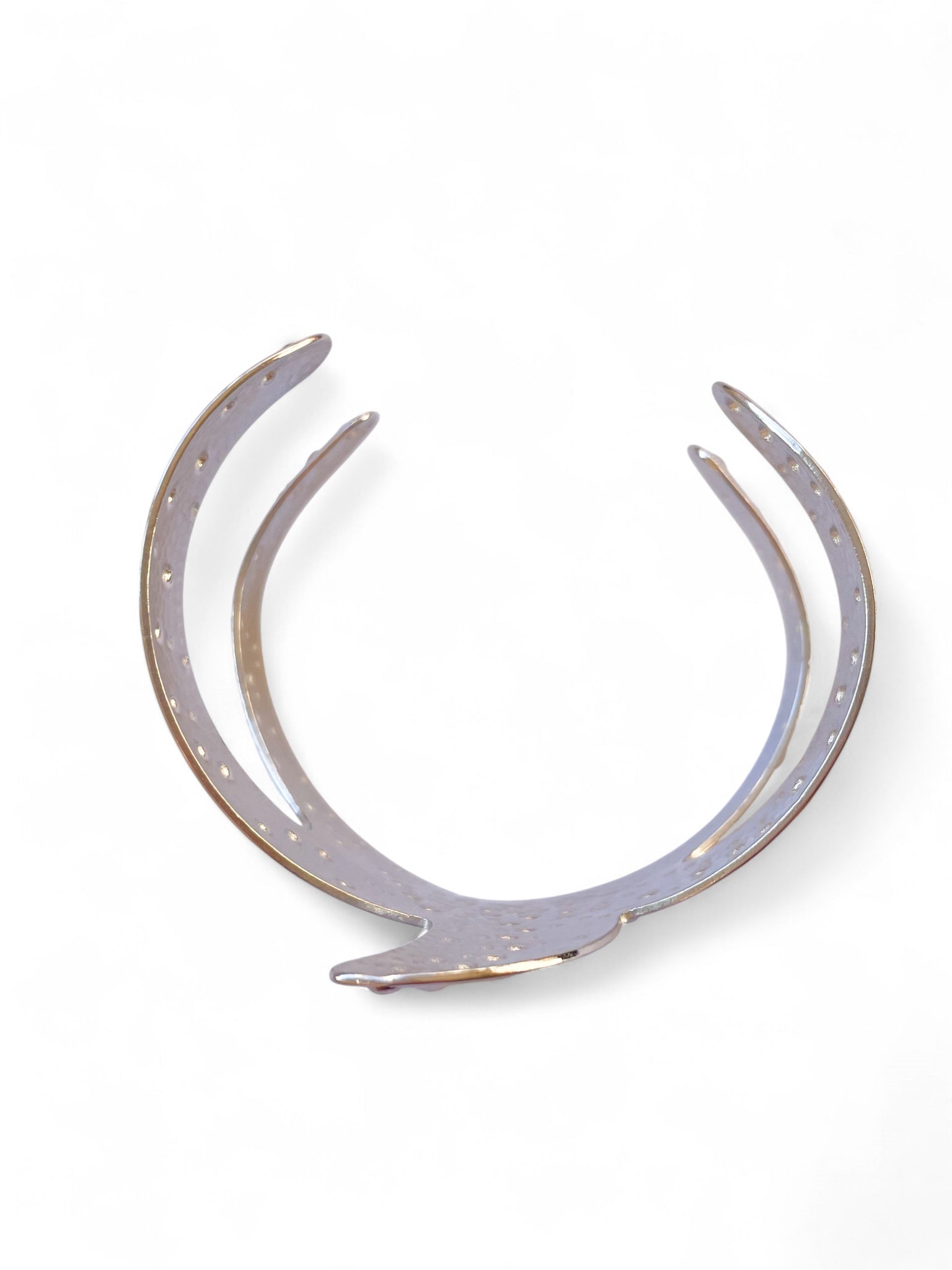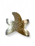 Bracelet doré en forme d’étoile de mer, avec une texture martelée délicate qui capte la lumière et évoque l’univers marin. Une pièce audacieuse mais raffinée.