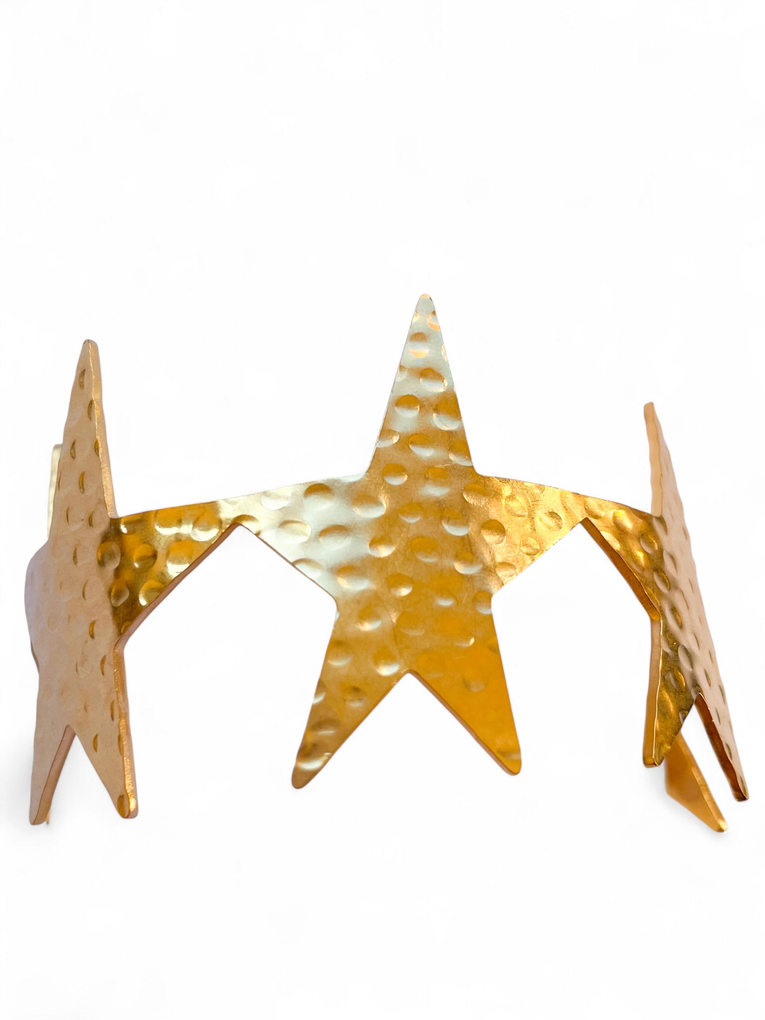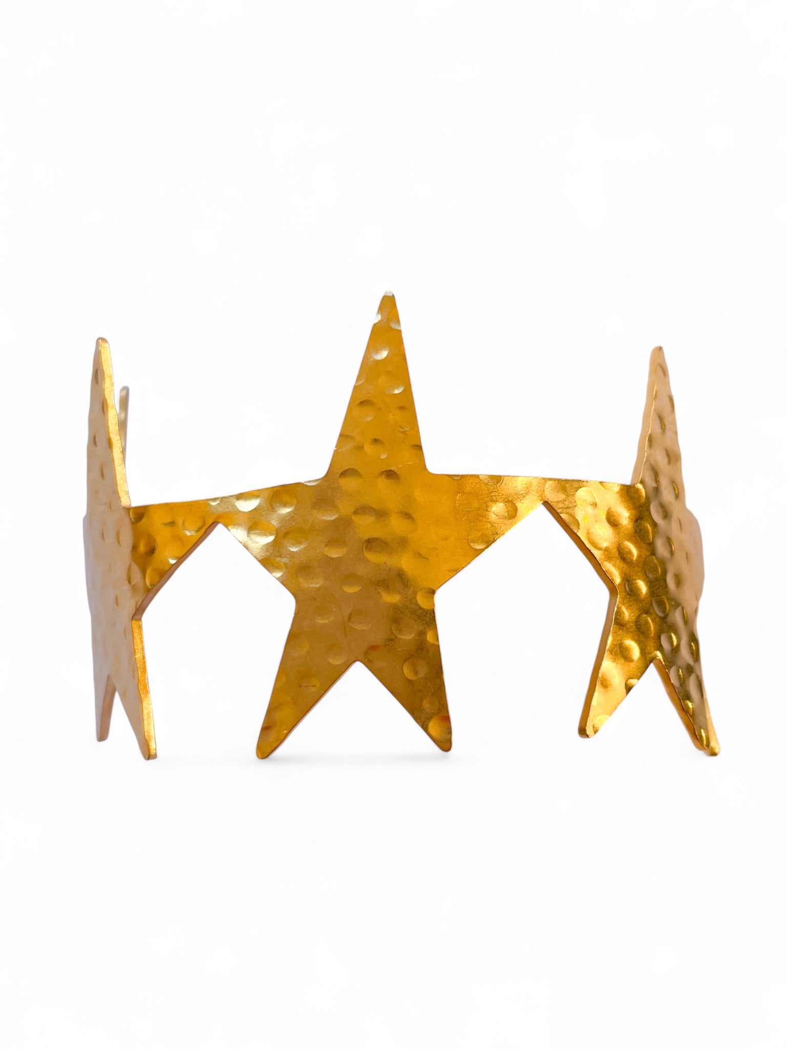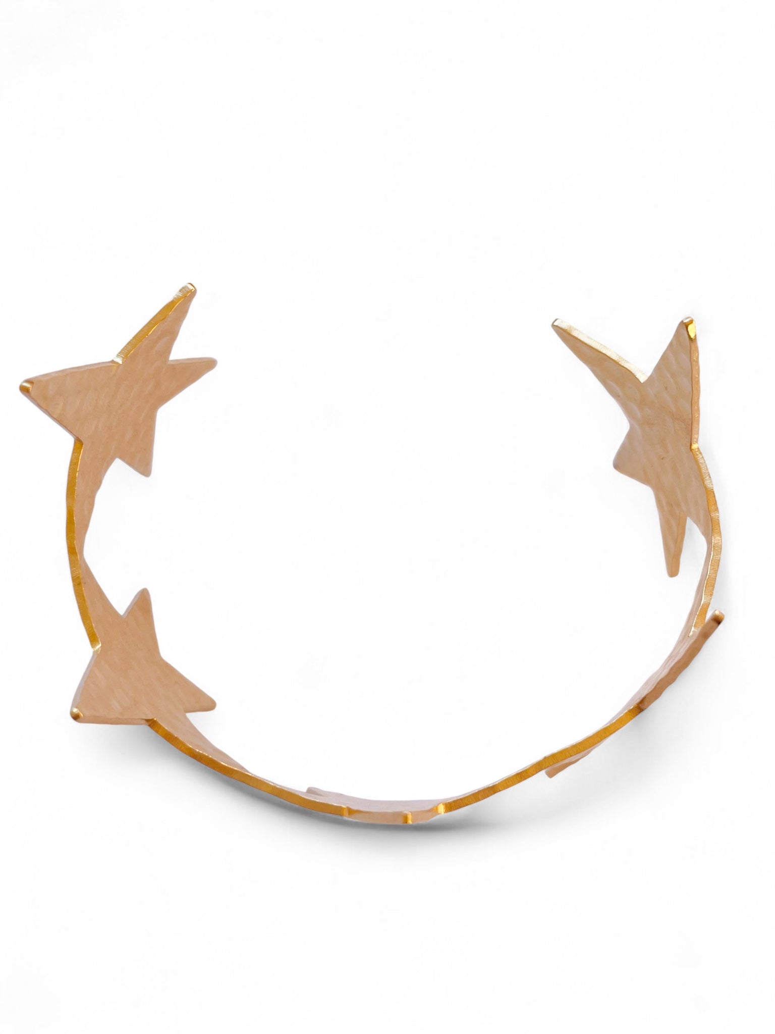 Un jonc doré ajouré au design graphique composé d’ondulations et de cercles entrelacés.