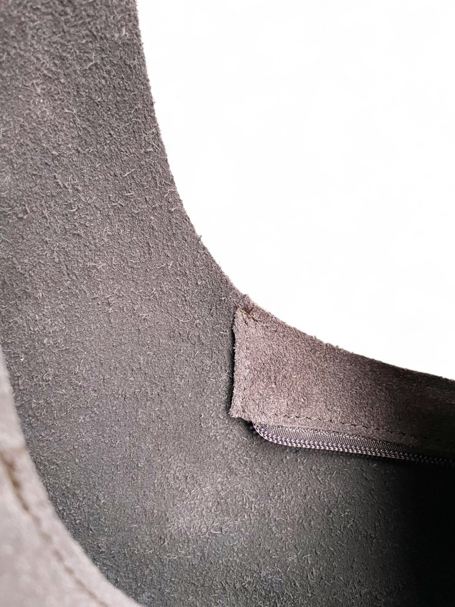 Matériaux: confectionné en en cuir retourné authentique (daim) et acier inoxydable de haute qualité.