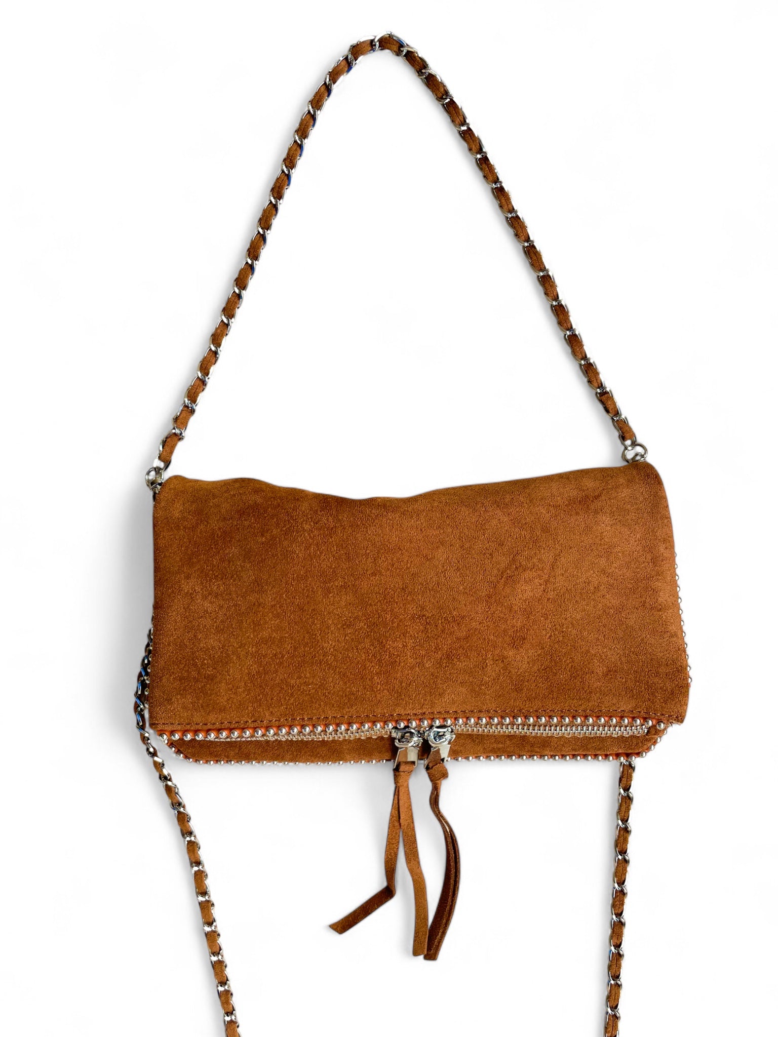 Détails: double compartiment zippé, poche arrière et deux bandoulières tressées amovibles qui combinent allure et praticité.