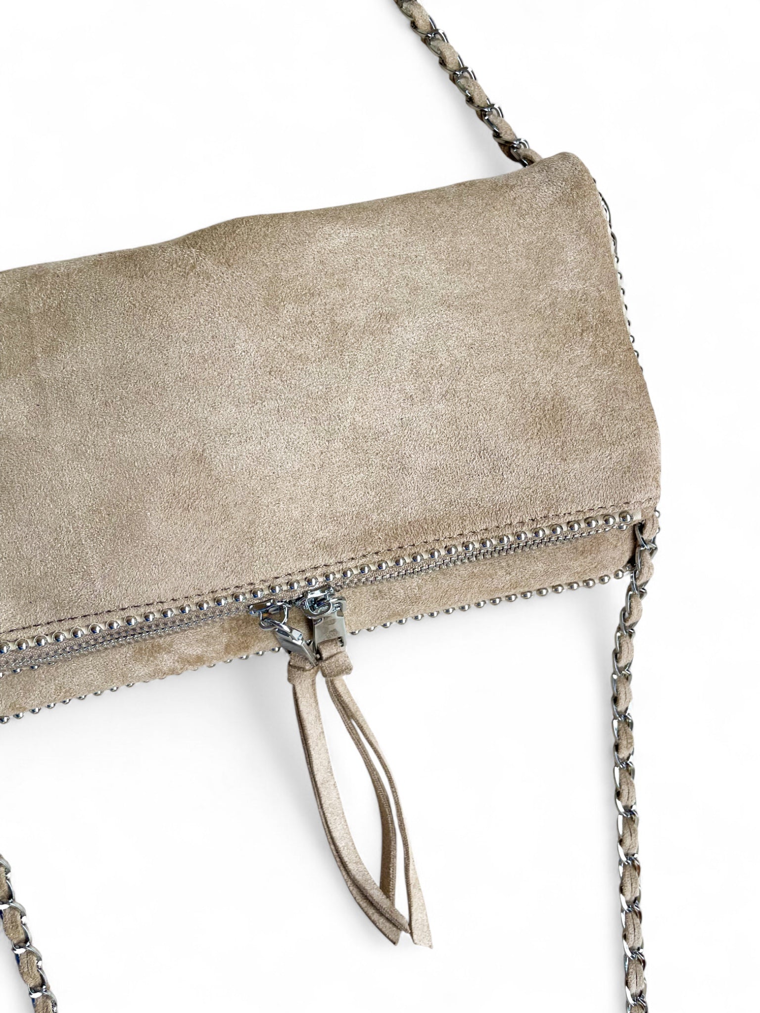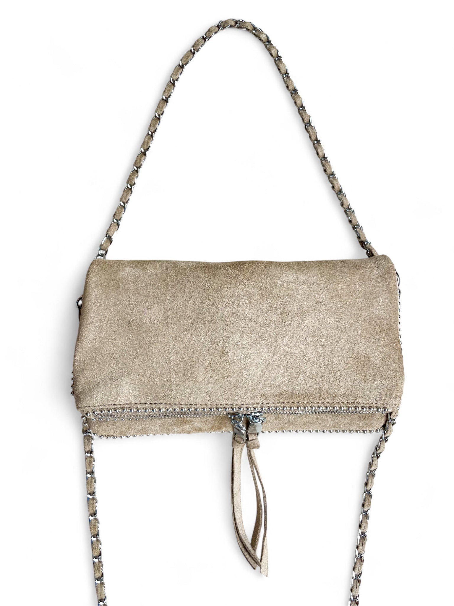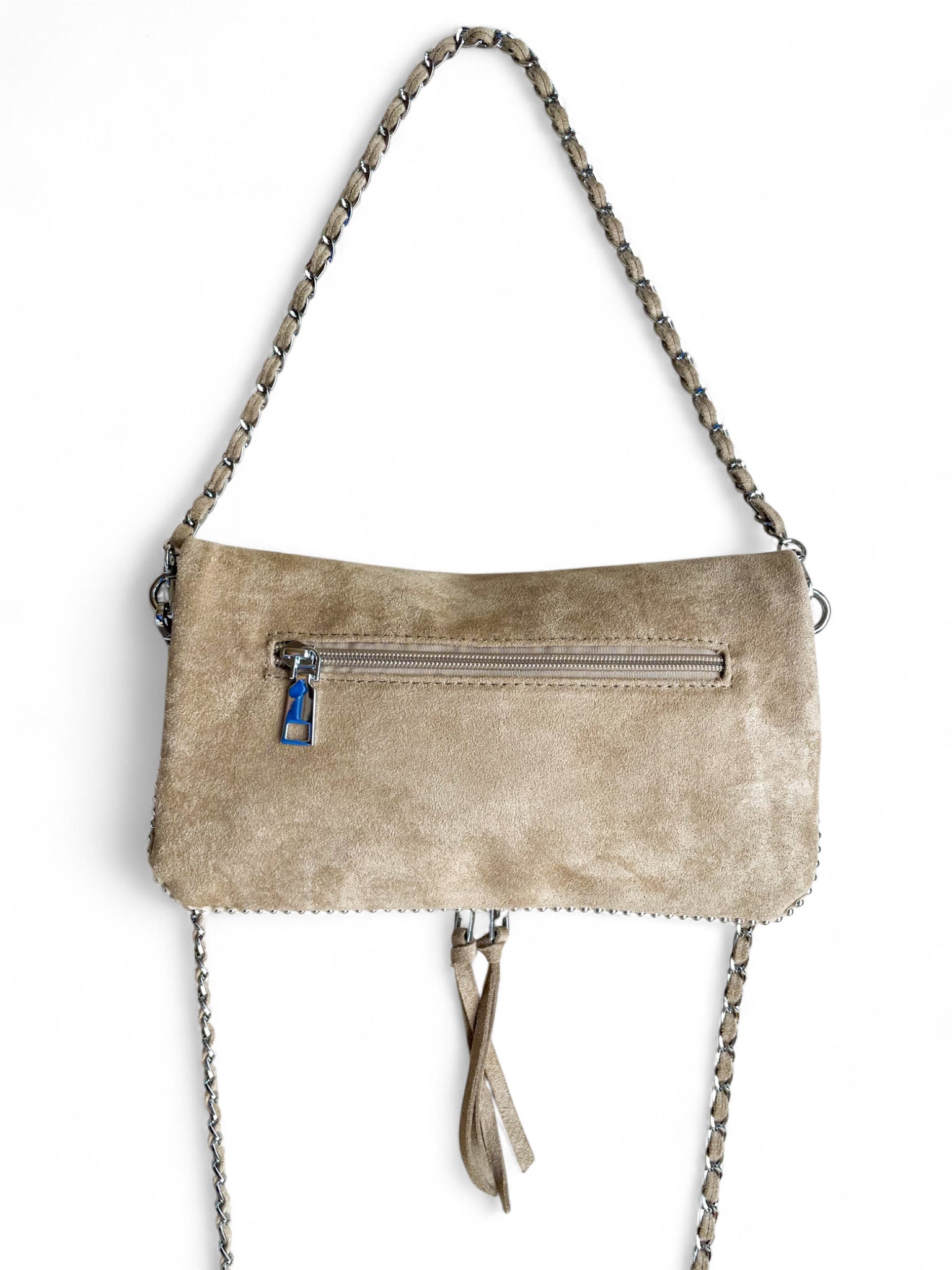 - Sac bandoulière Lennon: un sac en daim souple au design inspiré du style bohème rock, orné de finitions argentées et de deux bandoulières tressées amovibles pour un porté sur mesure. Disponible en bordeaux, camel et beige, Lennon se distingue par son esprit libre et son élégance intemporelle.